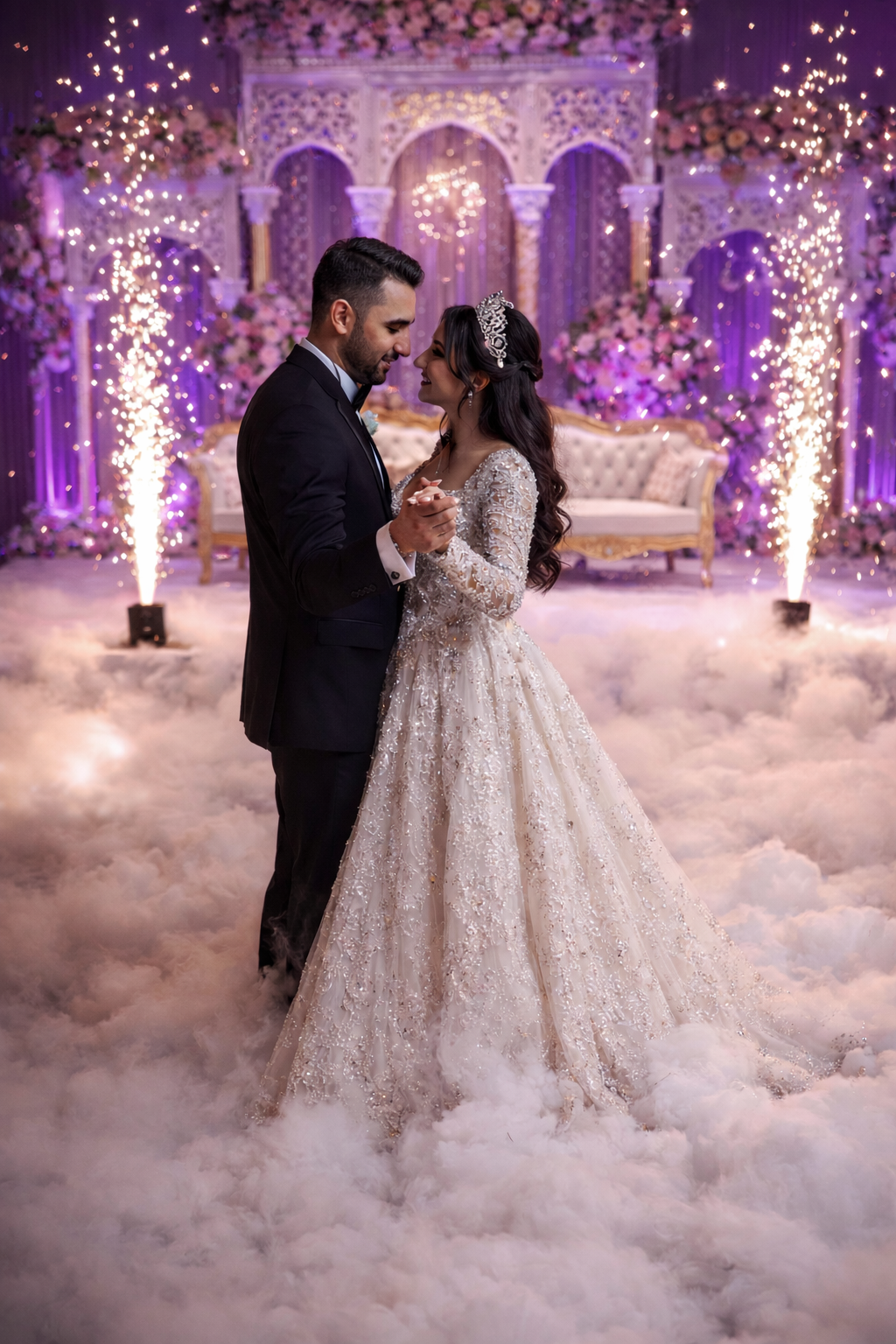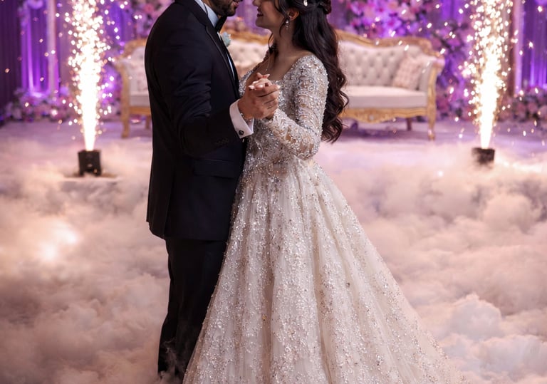 Create a dreamy “dancing on a cloud” moment with dry ice, or make a grand entrance with indoor cold sparklers. Safe, stunning, and unforgettable — perfect for weddings, first dances, and epic party moments.